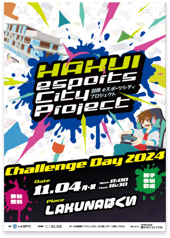 羽咋eスポーツシティプロジェクトのキックオフイベントとして、気軽にeスポーツを体験できるコンテンツが盛りだくさんのイベントです。